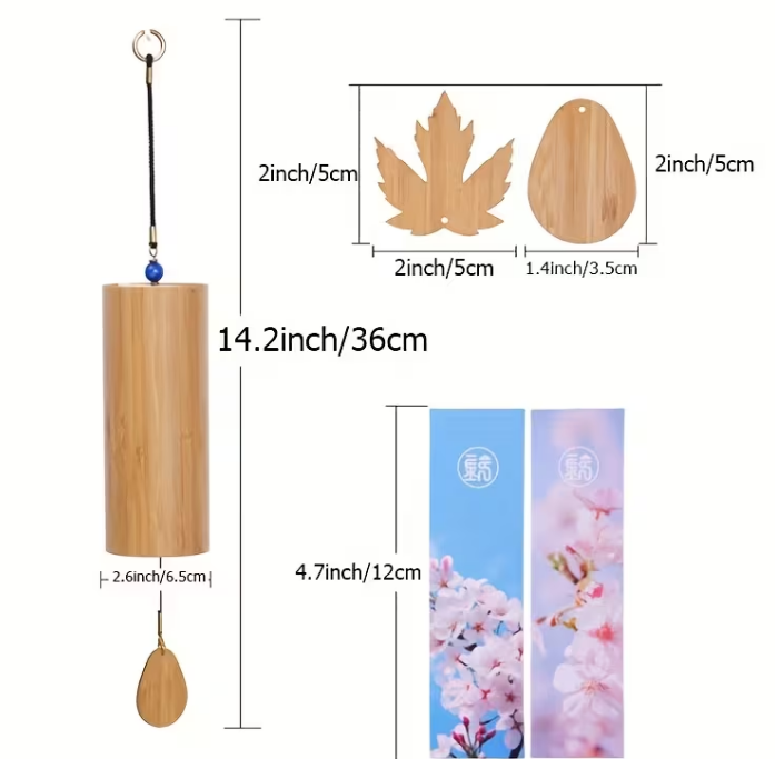 Costruito con bambù e legno in stile giapponese con 4 campanelli, che producono toni piacevoli al vento.